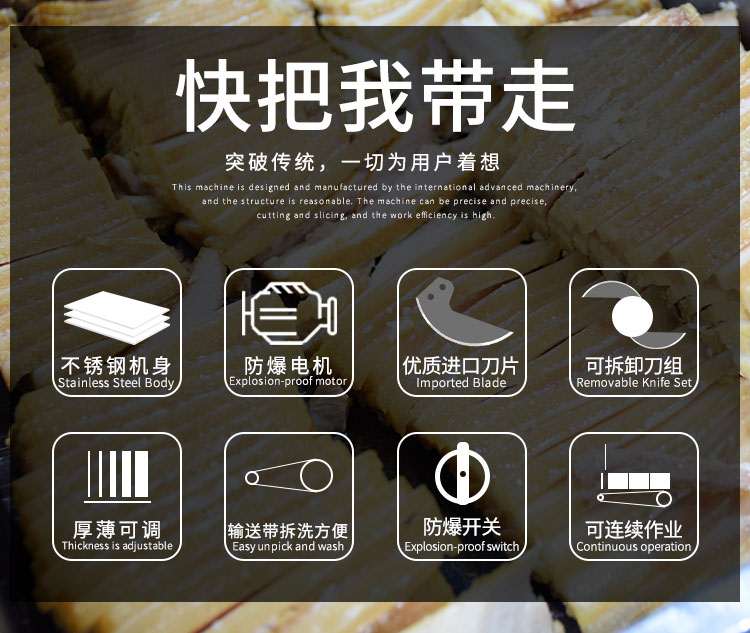 l 特制法國進(jìn)口刀片,鋒利持久,二把刀片切割原理,能將叉燒肉、臘肉、五花肉、牛肉、鹵味、熟肉類以及一些根莖類蘿卜,土豆,黃瓜,蓮藕,辣椒,苦瓜,絲瓜,西葫蘆等切成片形狀;