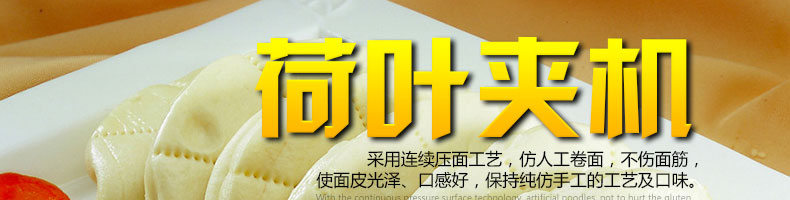 “荷葉夾”顧名思義便是其形狀似荷葉,蒸制后的成品小巧可愛,擺滿盤中不禁令人聯(lián)想到成片荷葉隨風(fēng)搖擺并不時(shí)傳來陣陣荷香的美景而頓生涼意,非常適合在酷暑中作為點(diǎn)心。荷葉夾機(jī),是一種把拌好的面團(tuán)放在機(jī)器,加工制作荷葉夾的食品機(jī)械,可生產(chǎn)各種荷葉夾、蝴蝶夾、肉夾饃、也可生產(chǎn)刀切饅頭。