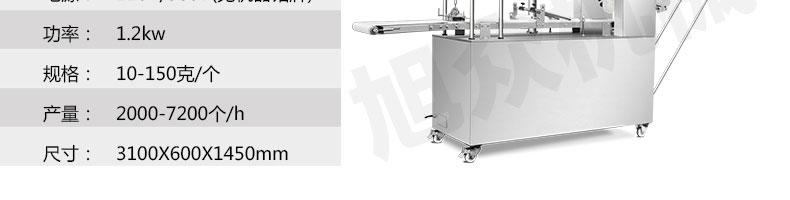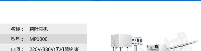 名稱MP1000荷葉夾機(jī) 電源220/380V(見機(jī)器名牌) 功率1.2kw 產(chǎn)量2000-7200個(gè)/小時(shí) 尺寸3100*600*1450mm 重量380kg 規(guī)格10-150克/個(gè) 其他