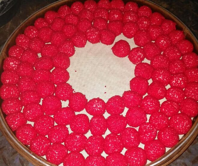 多功能湯圓機(jī)搭配裹粉機(jī)生產(chǎn)紅米粿效果