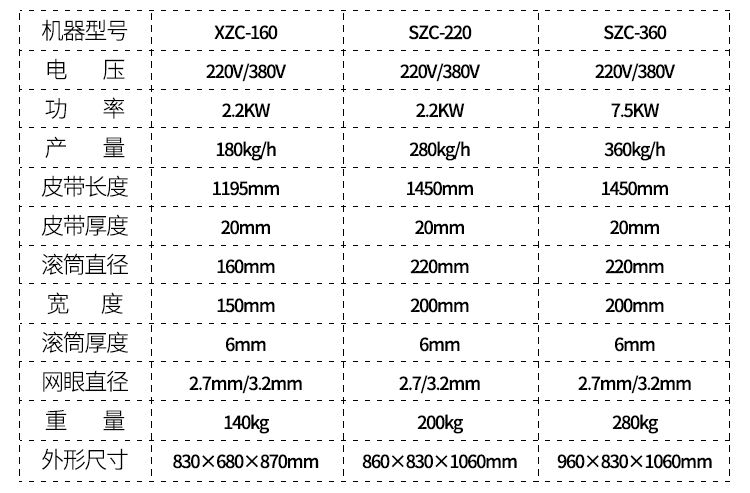 型號 | XZC-160 | XZC-220 | XZC-360 |