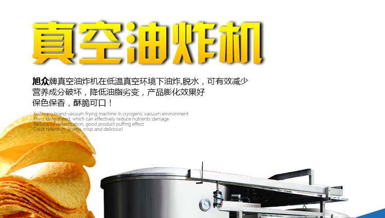 ●真空油炸是在低溫(80~120℃)對食品進行油炸、脫水,可以有效地減少高溫對食品營養(yǎng)成分的破壞。